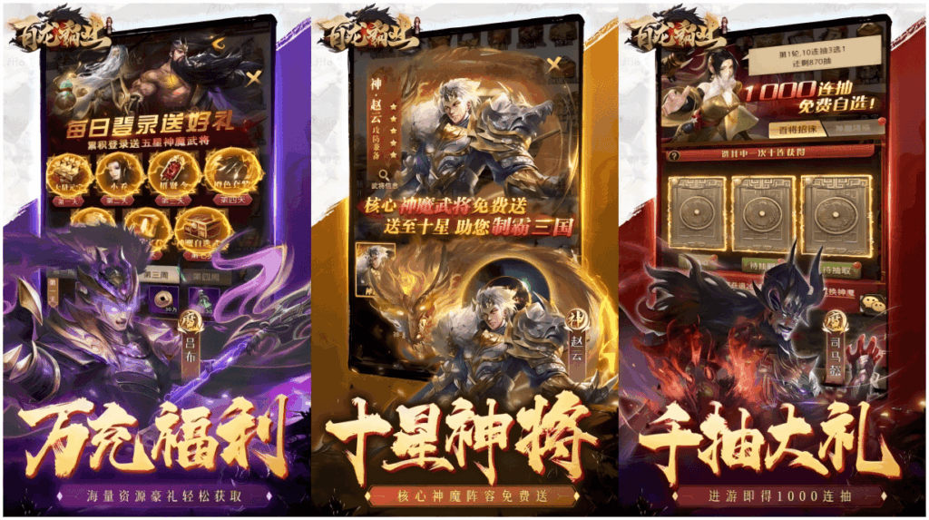 ★【千抽大礼】进游就送1000连抽,自选武将任你挑,开启你的辉煌三国之路,一统江山不是梦!
