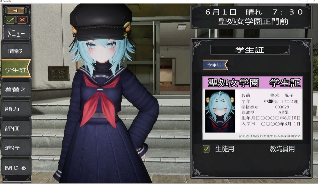 因认真顺从的性格深受教职员好评。特别获准开展校外课外活动,担任高级后援会会员专属(可无套性交)的上门家教。已加入玩〇育成课程,深度催眠完成,有性交经验,个体等级A级雌体。