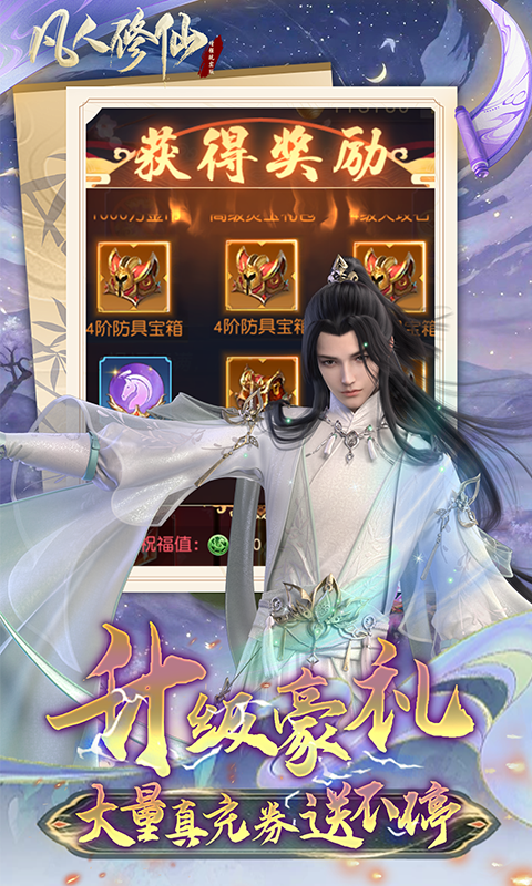 ★进游-战力礼包:银鳞仙姬100、固元玉5、天命突破选择礼包25、初阶 谕命石40、中阶谕命石25、高阶谕命石10、元神宝箱50、天命宝箱50