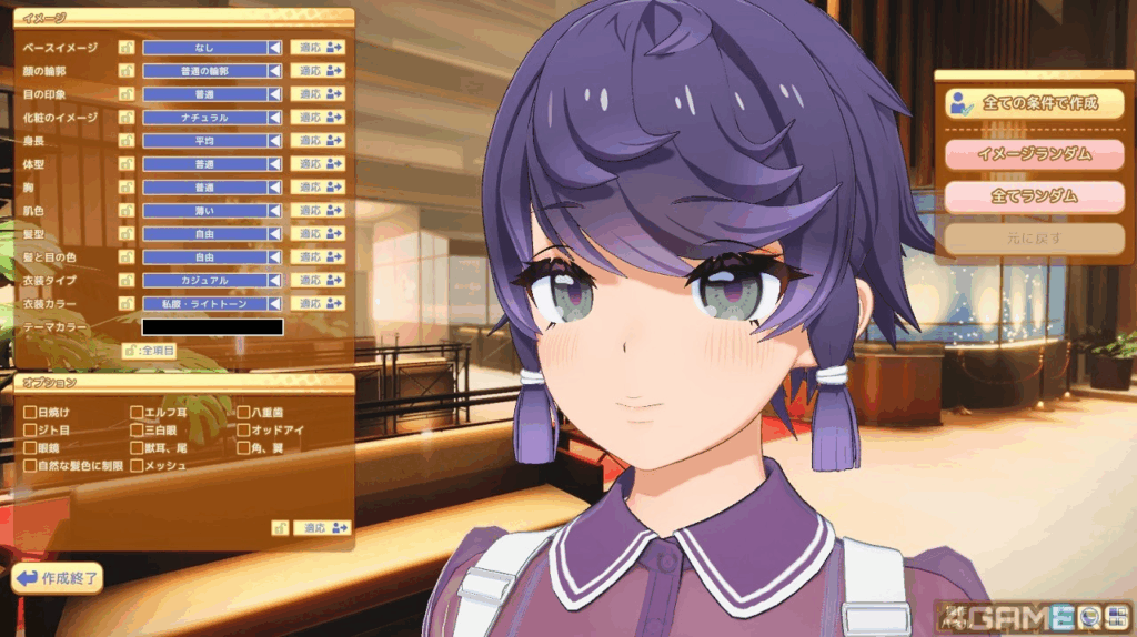 如果玩家不擅长捏角,游戏也提供了让玩家选择角色印象再随机出外观的方式,而且分得蛮细,可以让玩家随机到相近的感觉后再用手去微调,比起《Honey Select》有非常大的进步,虽然人家说两个作品没有关系…