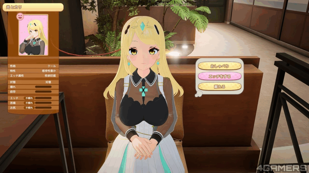 而随着滚床单内容的差异性(例如说你每次都把对方搞到死去活来),会使得玩家与该角色的关系性产生变化(跟Honey Select 一样有好意,享乐,隶属三个属性),可以观察到角色新的一面。