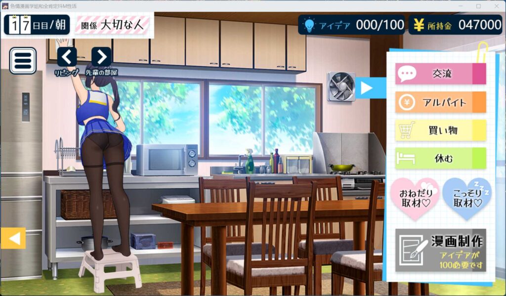 与全然肯定你的实结前辈共同生活,一边创作H漫画的模拟游戏。