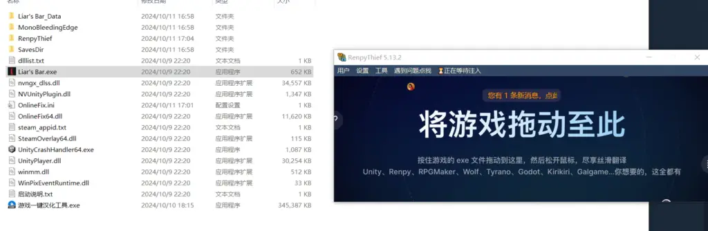 4.把游戏Liar’s Bar.exe拖到框里 具体看下图