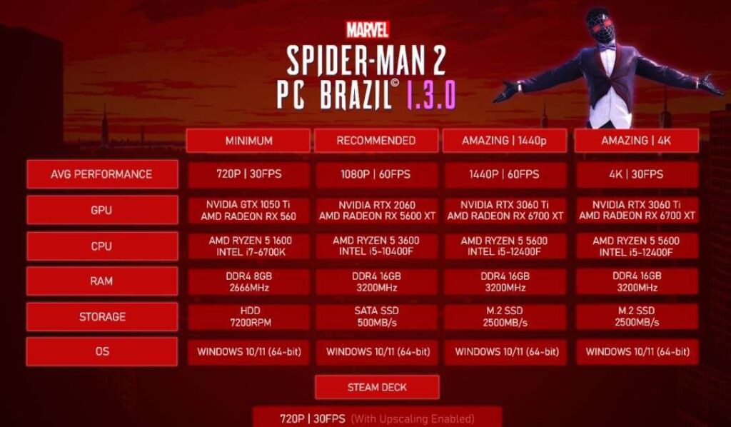 游戏为ps5的移植 对性能有些要求 具体配置表如下