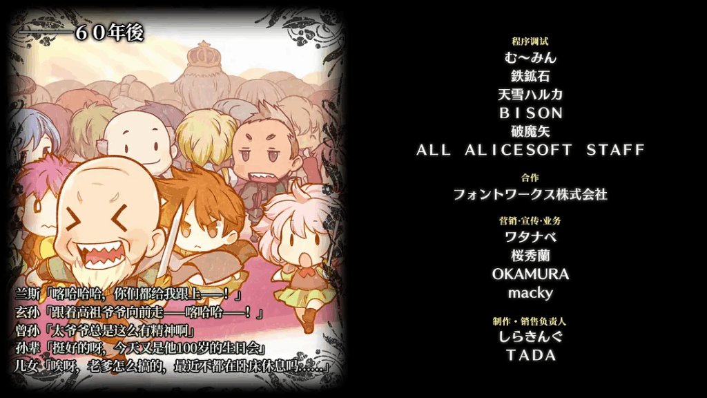兰斯10的伟大无需多言,一段故事的完结,一个时代的落幕(黄油自嗨罢了),也许是为了始于平成,终于平成,恶魔篇和天界篇都没有时间展开略有遗憾,但是在业界药丸的当下,能够给自己给玩家一个美好的结局已是难能可贵,余下的只有满满感动。