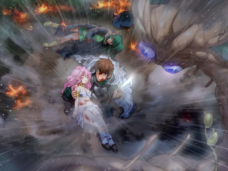 在随后的某年,拥有双重人格的魔剑士盖伊得到了魔剑卡奥斯,击败了被封印的污染魔王阿维尔,但是在挑战魔王姬尔并且即将击败她的时候,恶人格控制住了他的身体,魔王姬尔趁机将盖伊变为麾下魔人,同时成为她的情人。