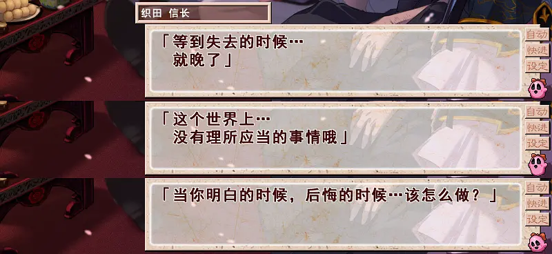 笑着推图,嘴角咧到耳根是常态,一路陪伴的女性角色能够修得正果,不免让人心生感慨,A社在虐女性角色的道路上稍微回了下头(不去故意打BE的话),唯一让我不爽的就是基露蒂,半路蹦出个意义不明的绿茶兔子,把谦信JJ的戏份还回来,搞不懂新加这个角色还给个命女到底是A社哪个员工还是TADA的私货,看得我一脸懵逼,人气也不行,剧情也不行,突出一个莫名其妙,真的气死!