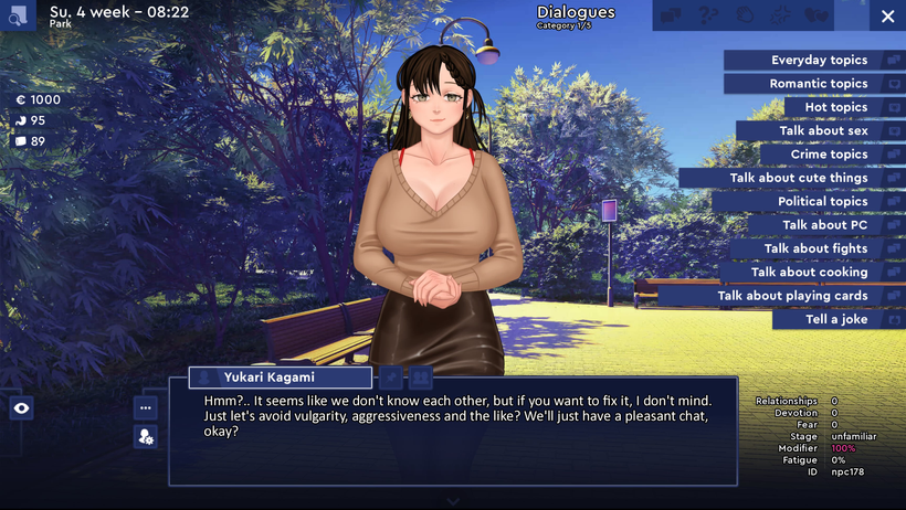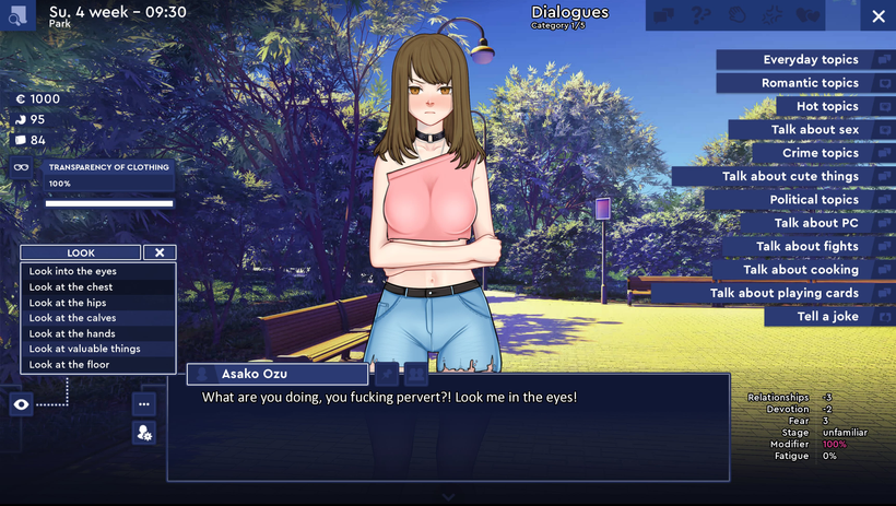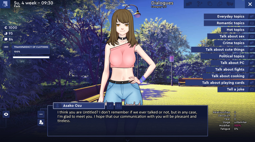 School Game 是一款带有 RPG 元素的游戏。您可以在学校环境中创建角色并不断成长。学习技能、购买装备、结识同学、建立声誉和预算、成为学生会和各种俱乐部的成员,并改善与学生会主席的关系(您可能决定更换主席)。这难道不是高中时代甚至学生时代每个人都想要的:完全的行动自由吗?