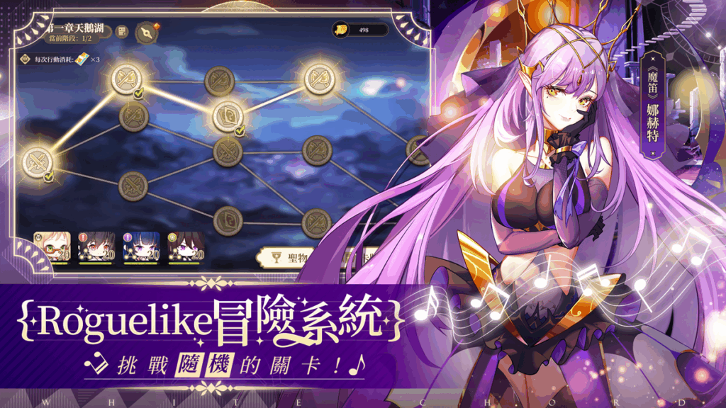 强策略与灵活操作兼具的即时卡牌对战,直面强敌抑或步步为营由你决定!冒险旅途中的Rogue元素,在随机事件抉择中寻找通往胜利的道路!那么现在,作为维尔兰德最后的希望,请你挥动手中的指挥棒,带领少女们向乐魇华丽宣战!