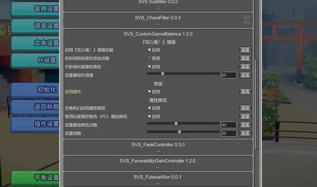 预设开启狂掉好感的插件SVS Custom Game Balance v1.0